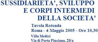 “Sussidiarietà, sviluppo e corpi intermedi della società”: è questo il titolo della tavola rotonda che si è svolta a Roma, a Villa Medici il 4 maggio a partire dalle ore 10.30, in occasione della V Giornata della Fondazione, che a livello locale, dalle singole Fondazioni di origine bancaria, è stata celebrata sabato 7 maggio.
