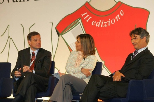 Da sinistra: Lorenzo Bini Smaghi, membro Comitato Esecutivo Banca Centrale Europea; Maria Latella, direttore A; Giuseppe Mussari, presidente Banca Monte dei Paschi di Siena.