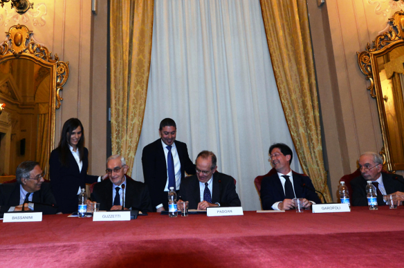 il ministro dell’Economia, Carlo Padoan, firmano il Protocollo